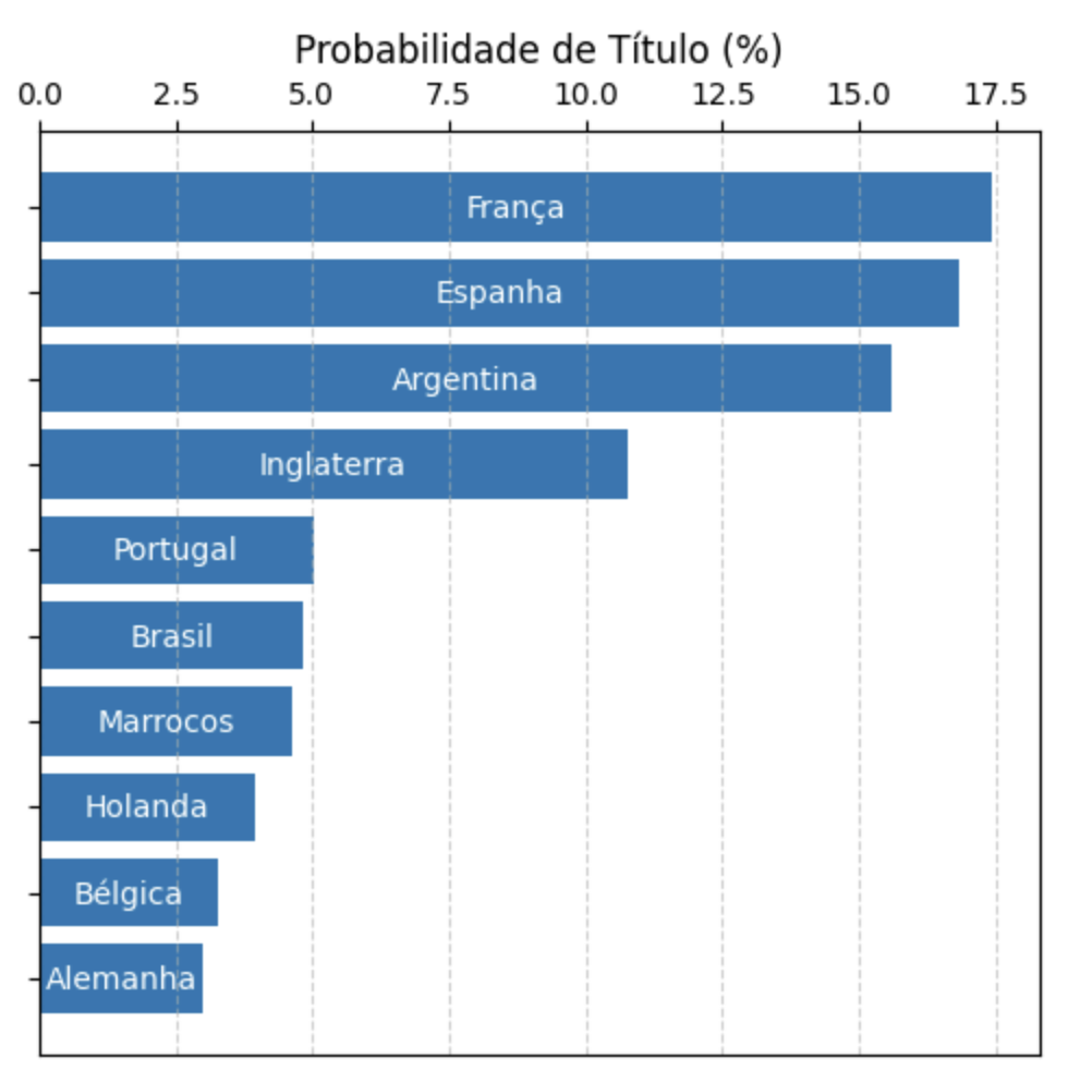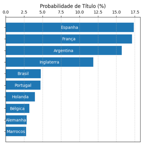O objetivo do programa é encontrar a probabilidade de cada país de ser campeão e quais são as três finais mais prováveis.